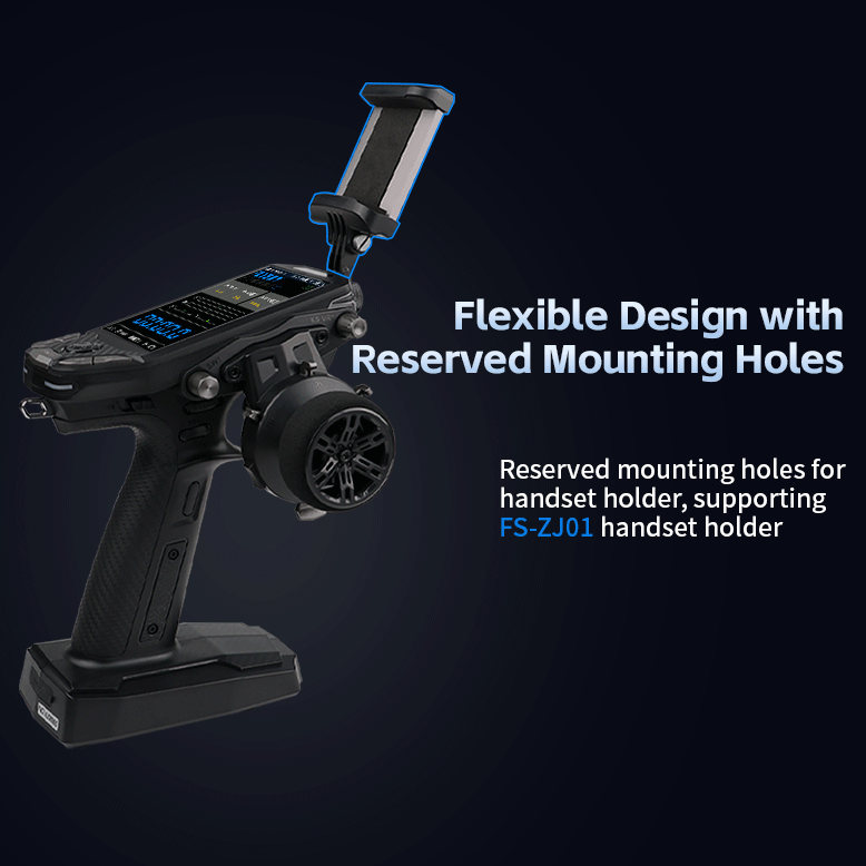 The new Flysky G11P is an incredibly well-equipped remote control with a fantastic price/performance ratio! HIGHLIGHTS: The software is pre-programmed in 3 languages ??(DE/EN/FR) and only needs to be selected in the menu. The hardware can be perfectly adapted to the pilot's needs through numerous settings. 11 channels are available The ""Main Interface"" provides information about the most important parameters at a glance. There are also shortcut functions (Home 1 & Home 2) available, which can be assigned 9 different functions according to your own wishes. The power supply is a 2S/7.4V LiPo battery with XH balancer connector or 2* 18650 LiPo batteries (sold separately) USB-C charging port FUNCTIONS: Reverse EPA Subtrim D/R Setup Curve Channel Speed ABS Throttle Iddle Up Throttle Lock Cruise Throttle Type AUX.CH ASSIGN Function Mixes (4WS, Track Mix, Drive Mix, Brake Mix, Programming Mix 1-8) Timers (Up, Down, Lap) sensor 40 model memories failsafe 3 languages ??(DE/EN/FR) 2S LiPo operation (batteries not included) Backlight/Sound/Vibration SVC function (separate receiver) Beginner Mode Adjustable trigger travel, trigger preload, steering wheel preload SD card slot USB-C charging port TRANSMITTER SPECIFICATIONS: Model name: FS-G11P Matching receiver: FS-R11P Usable for: Cars and boats Channels: 11 Number of frequency bands: 133 RF: 2.4GHz ISM Max. Power: <20dBm (eirp) (EU) RF Protocol: ANT Resolution: 4096 Data connection: USB Type-C; 3.5mm jack (DSC); SD card slot Input Power: 6-9V/DC; 18650 * 2 pcs. / 2S LiPo (not included) Distance: +/- 300m (ground distance without interference sources) Antenna: 2 internal antennas Display: 3.5 inch 320*480 full dot color non-touch IPS screen Online Updates: Yes Temperature range: -10°C - +60°C Humidity: 20% - 95% Languages: German; English; French Weight: 371g Dimension: 150*120.8*197.1mm charging socket: USB-C Certificates: CE, FCC, ID: 2A2UNG11P00 RECEIVER SPECIFICATIONS: Model name: FS-R11P Suitable receiver: FS-G11P and other Flysky transmitters with ANT protocol Usable for: Cars and boats Channels: 11 RF: 2.4GHz ISM Max. Power: <20dBm (eirp) (EU) RF Protocol: ANT Resolution: 4096 Data output: PWM/PPM/i-BUS/S-BUS Operating Power: 3.5-9V/DC Distance: +/- 300m (ground distance without interference sources) Antenna: External single antennas Display: LEDs Online Updates: Yes Temperature range: -10°C - +60°C Humidity: 20% - 95% Languages: German; English; French Weight: 10g Dimension: 37.0*25*13.3mm Waterproof: yes PPX4 Certificates: CE, FCC, ID: 2A2UNG11P00 INCLUDED IN DELIVERY: 2.4GHz G11P transmitter 2.4GHz R11P receiver aluminum handle Quick Start Guide handle (thick/thin) USB-C cable grub screws High Elasticity spring Low Elasticity spring transport box (FS-G11P)