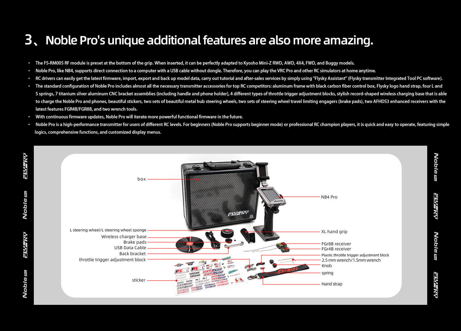 The NB4 is the newest, fastest and most stylish Flysky ground transmitter to date. Not only does it look great with its new sleek design and metal finish, it also features new flexibility and functionality never seen before in the RC world.
