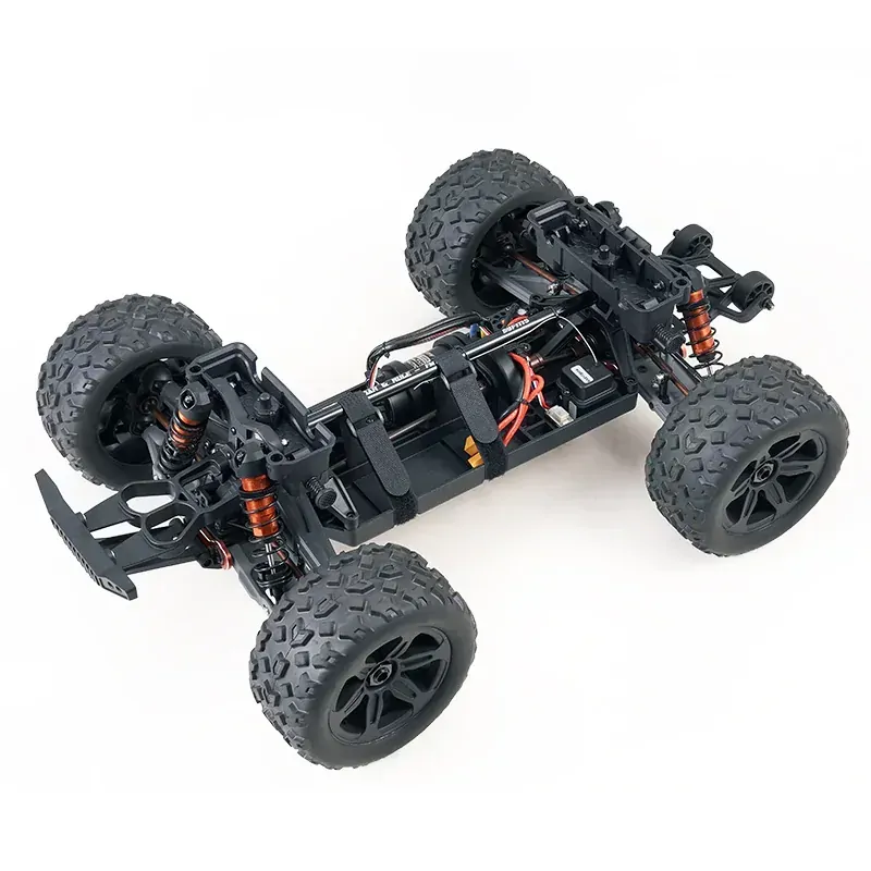 The FMT10 boasts a unique design with a metal chassis, metal tie rods, and full ball bearings throughout the vehicle, ensuring stability and durability during jumps and aggressive driving. CNC-machined components like connectors and servo cases enhance the overall quality and feel of the truck. The body shell features a quick-release structure, allowing it to be easily detached from the chassis in 2 seconds with a gentle push, while the clever design ensures no interference from obstacles at the connection points.