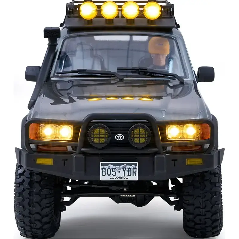 FCX10 LC80 features meticulously crafted details such as a snorkel, wipers, door handles, off-road bumper, license plate, rear ladder, and more. Additionally, the roof rack is designed to hold acessories, making your off-road adventures feel truly authentic.