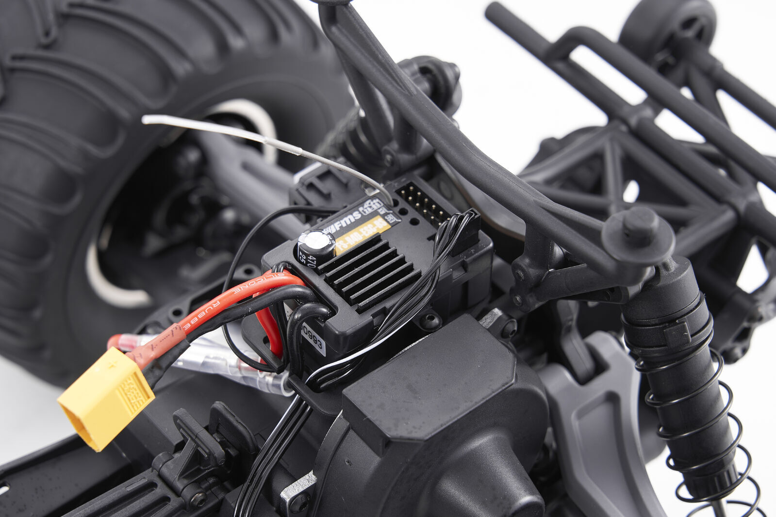 Pre-assembled and ready to run, the fms f100 trucks are pre-installed with a high-quality 40a 2-in-1 esc/receiver adn a 2s 7. 4v 3300mah 30c lipo battery fitted with an ct60 connector, it delivers plenty of power and explosive speed.