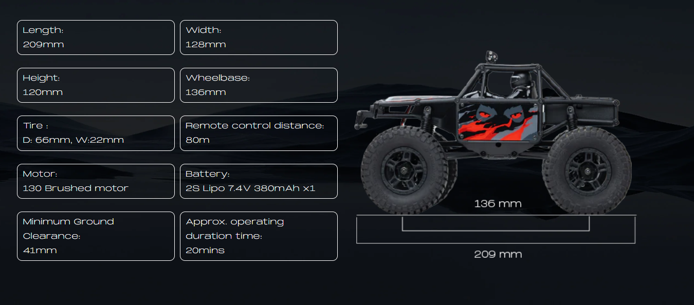 The lemur, beyond its captivating exterior, delivers equally awe-inspiring practical performance. Whether it's the approach angle, departure angle, or climbing angle, this vehicle displays exceptional prowess. Its design enables it to gracefully tackle steep terrains, akin to scaling cliffs. Whether climbing, off-roading, or exploring, the lemur can handle it all with ease, delivering the ultimate rc experience