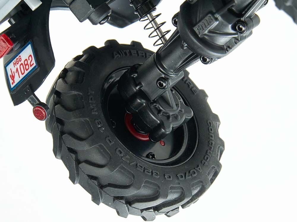 Using a powerful FCX24 high-performance climbing chassis, choosing a high-strength nylon integrated frame, not only makes the whole vehicle lighter in weight, but also gives the frame higher strength, providing more outstanding control experience while ensuring stability. Unimog not only retains its excellent performance, but also cleverly incorporates a series of realistic components on the chassis, such as fine fuel tank and battery, to restore the real car s structure.