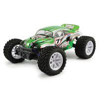 Write A ReviewClassic beetle style and brawn fuse together with the ftx bugsta, the latest heavy-duty 4wd off road vehicle from ftx. Using the same chassis platform as the hugely popular carnage truggy, the bugsta captures best of buggies and trucks, with a bit of monster thrown in for good measure! the 4wd shaft drivetrain features metal diff gears and front universal driveshafts, while an integrated slipper helps protect the drivetrain from possible damage under power. With adjustable turnbuckles all round and large bore oil filled shock absorbers the bugsta can be tuned to suit you or the surface. Etronix provide the electronics in the form of the ex2 2. 4ghz crystal free radio system. The waterproof photon 60 amp 2. 1w sensorless brushless speed control combined with the 2950kv motor provides exceptional speed and power. To get the best from the brushless system, ftx include a voltz 2s lipo battery, balance charger and charge sack for a complete package. All you need to add are aa batteries for the transmitter and you are away! want an r/c vehicle that is as much fun as it looks then the bugsta is the ride for you! ftx bugsta features: 99% ready to run etronix ex2 sport 2. 4ghz radio etronix 2. 1w waterproof 60 amp speed control etronix 2950kv brushless motor etronix 3kg metal geared waterproof steering servo voltz 3250mah 7. 4v 20c lipo hard cased battery voltz lipo charge sack pre-painted beetle style bodyshell moulded tub chassis 4wd shaft drive with slipper system unique gearbox design for low cg lightweight high impact arms big bore oil filled adjustable shocks gearbox metal crown & pinion gear front universal driveshafts adjustable wheelbase adjustable turnbuckles fully adjustable suspension including, droop, camber, toe-in, wheelbase etc slipper for drivetrain damage protection chassis accepts nimh or lipo battery wide range of option parts available spec check: length: 415mm width: 328mm height: 156mm wheelbase: 290/295mm tyre: 㸠125 x 60mm gear ratio: 11. 2:1 required to complete: 8 x aa batteries (ftx-5545)