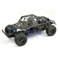 Front and rear fully independant suspension features oil filled shock absorbers, adjustable turnbuckles and anti-roll bars for fine tuning. Flexible front and rear wide tubular style bumpers and skid plates protect, while the pre-printed bodyshell covers an internal roll cage and driver cockpit.