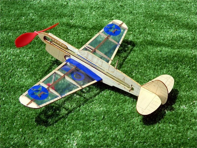 The kit contains LASER CUT balsa parts, plastic propeller & wheels, detailed stick on wing covering and rubber band motors. All you will need to complete the model is glue and wire cutters!