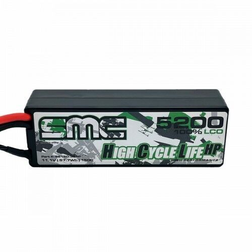 HCL-HP 11.1V-5200mAh-150C pack. Hardcase Introducing the new HCL-HP series designed to give your RC truck , car or boat high performance and reliability. Based off our popular DV Extreme series with an update in materials to increase the mAh to size ratio. Built with 100% LCO cathodes for optimum performance and cycle life. The low IR(internal resistance) of the cells used in these packs means you wil get very good acceleration and speed while keeping the pack down in temperature. True mAh +/- 5%: 5200mAh Voltage: 11.1V C rate: 150C Size: 38mm x 47mm x 139mm Hardcase Weight: 419gr Wire size: 10AWG Charge rate: 1C to 5C please note that a higher charge rate will put less mAh into the pack and will reduce cycle life (SMC-52150-3S1P-T)