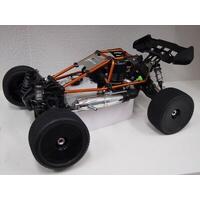 Unleash the beast that is the Hyper SS Cage Truggy. OFNA continue to develop their SS platform with the Cage Truggy nitro RTR featuring a full aluminium roll cage over the SS Truggy chassis. The Cage Truggy features the lastest suspension design for improved traction and stability. Reducted weight over its predecessor provides the SST with improved acceleration for better speed and jumping. Each long throw suspension arm is handled by anti-roll bars and the latest generation 18mm big bore oil filled shock absorbers that feature threaded bodies for fine spring te4nsion tuning. Optimized steering block and hub carrier provide better steering and rough track handling. The installed radio consists of HoBao 2.4GHz 2-channel radio and high quality Savox servos to help truly unleash the performance of the Hyper Cage Truggy. Power is provided by A hyper.30 and polished tuned pipe fuelled up by the oversized 150cc fuel tank for longer run times (legal 125cc option available)