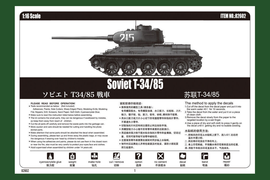 Enquire about " HobbyBoss 1/16 WWII Soviet T34/85 Plastic Model Kit [82602]"