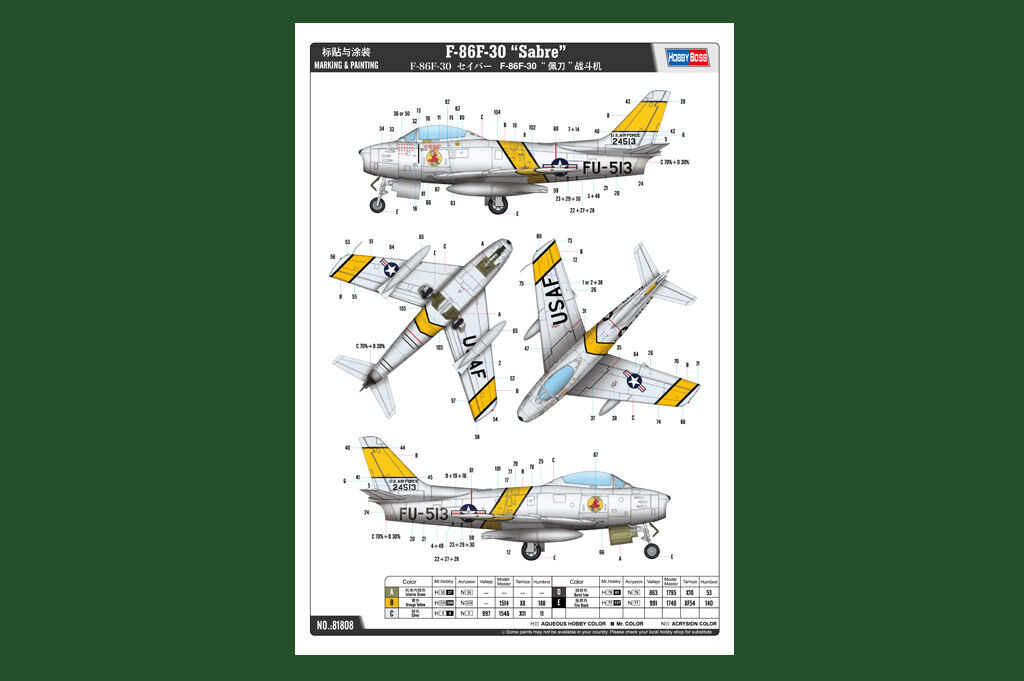 Write A ReviewEnquire about " Hobbyboss 1/18 f-86f-30 "sabre" plastic model kit [81808]"