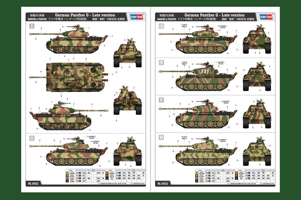 HobbyBoss 1/35 German Panther G - Late version Plastic Model Kit [84552]