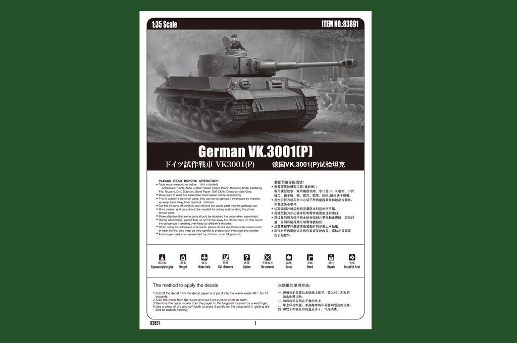 Hobby Boss 1/35 VK.3001 (P) Tank The VK 30.01 (P) was the official designation for a medium tank prototype produced by Germany between 1940 and 1941. Two prototype hulls were made. The tank never entered serial production Require paint. glue and tools to complete