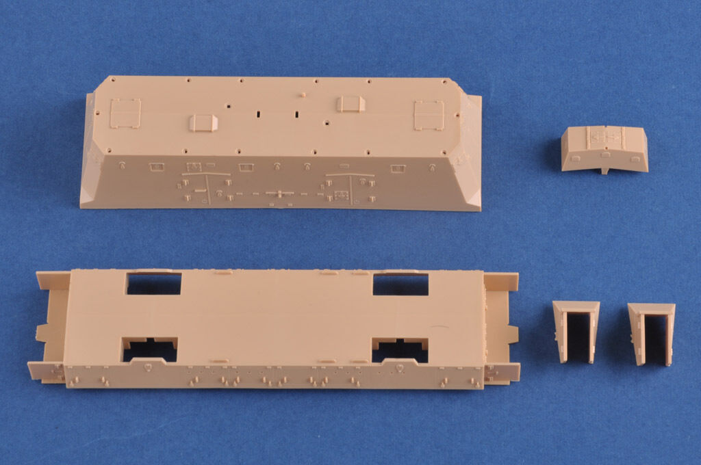 For the armored train units of Type BP-42, the artillery was increased, following Russian and Polish examples, to four guns, which were not, though , mounted two to a car as in the latter types, but one per separately built ten-sided rotating turret, in order to avoid too-great losses from a direct hit. The two halves of the train, before and behind the locomotive were identical and consisted of one artillery car with one 10cm le. F. H 14/19(p) gun, one command and infantry car and one artillery and anti-aircraft car with one 7. 62cm F. K. 295/l(r) and one 2cm anti-aircraft quadruple unit.