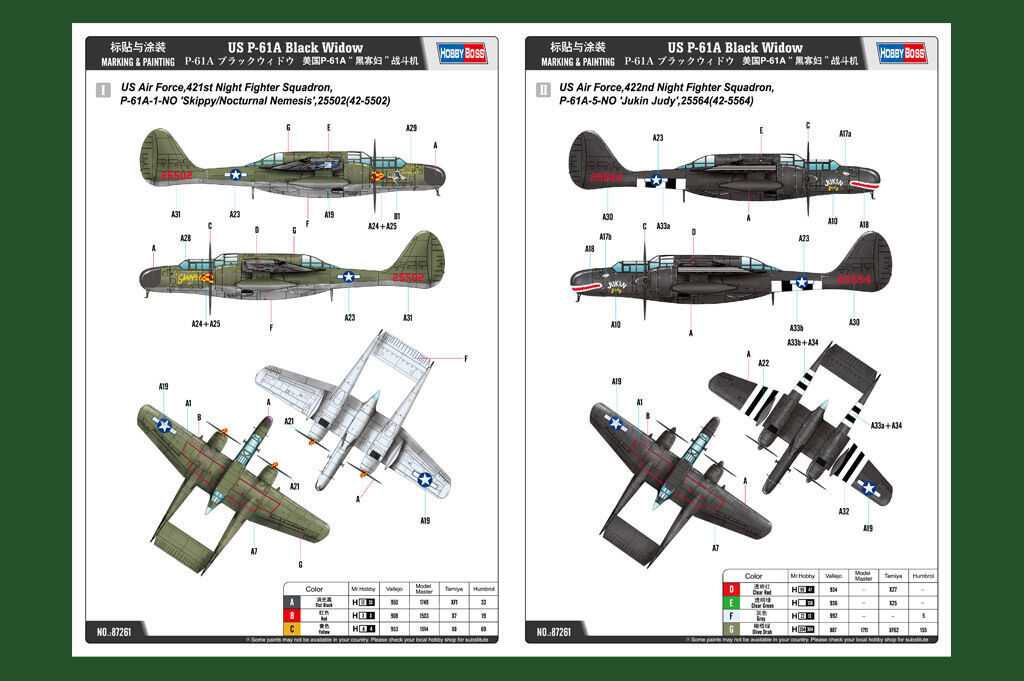 Enquire about " Hobbyboss 1/72 us p-61a black widow plastic model kit [87261]"