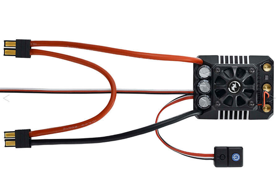 Built with the most rugged and high-quality components and coupled with cutting-edge firmware, the ezrun max6 is able to deliver unmatched power and performance for even the most hardcore of racing applications, but is also responsive enough to protect itself from damage due to overloading due to physical abuse, overuse or even human error. This esc is applicable to various 1/6th & 1/7th scale vehicles like the traxxas xo-1, and also suitable to various 1/8th scale heavy vehicles like the cen gst-e. It's the ideal option for high-end aggressively powered builds. With incredible acceleration capabilities and a rock-solid, stable output, the max6 can handle instant full-torque start-ups for wheelies, high-speed racing on straightaways and powering through the bumpiest terrain. The user will have the choice of adjusting the esc parameters as per his preference and ability. The max6 has adopted the worlds first hv built-in bec with an output current of up to 25amp and a switchable output voltage of 6v-7. 4v. The high voltage bec is designed to handle todays high voltage servos on demand used by large scale vehicles. The max6 also features an electronic switch with a lifespan of over 50000 on/off cycles, housed in a completely waterproof, dust-proof and shock-resistant design. The max6 is built with internal anti-spark circuitry that protects not only battery connectors from damage but helps to prevent physical injury due to burnt fingers from the inevitable issue of sparking when hooking up the esc to higher voltage battery packs (5s/6s/7s/8s). The waterproof and dust-proof design allows the max6 to be used in all weather conditions without any issue of damage caused to the esc from water or dust hobbywing ezrun max6 v3 features: high reliability & durability great flexibility & versatility advanced and secure electronic switch applicable to all weather conditions high voltage built-in bec advanced and secure electronic switch regular firmware updates - free of charge built-in anti-spark system maintenance free spec check: scale: 1/6th?1/7th brushed/brushless: brushless sensored/sensorless: sensorless waterproof: yes cont. /peak current: 160a/1050a input: 3-8s lipo/9-24 cells nimh bec output: switch mode: 6v/7. 4v,6a input wires: red-10awg-200mm*1/black-10awg-200mm*1 output wires: black-10awg-200mm*3 input connectors: no output connecotors: 6. 5mm female gold connectors (pre-soldered onto the pcb) fan size: 35. 0x35. 0x10. 0mm fan voltage range: 5-7. 4v wifi module: supported program port: fan/program port size: 70. 0x56. 0x46. 5mm weight: 240g (hw30105000)