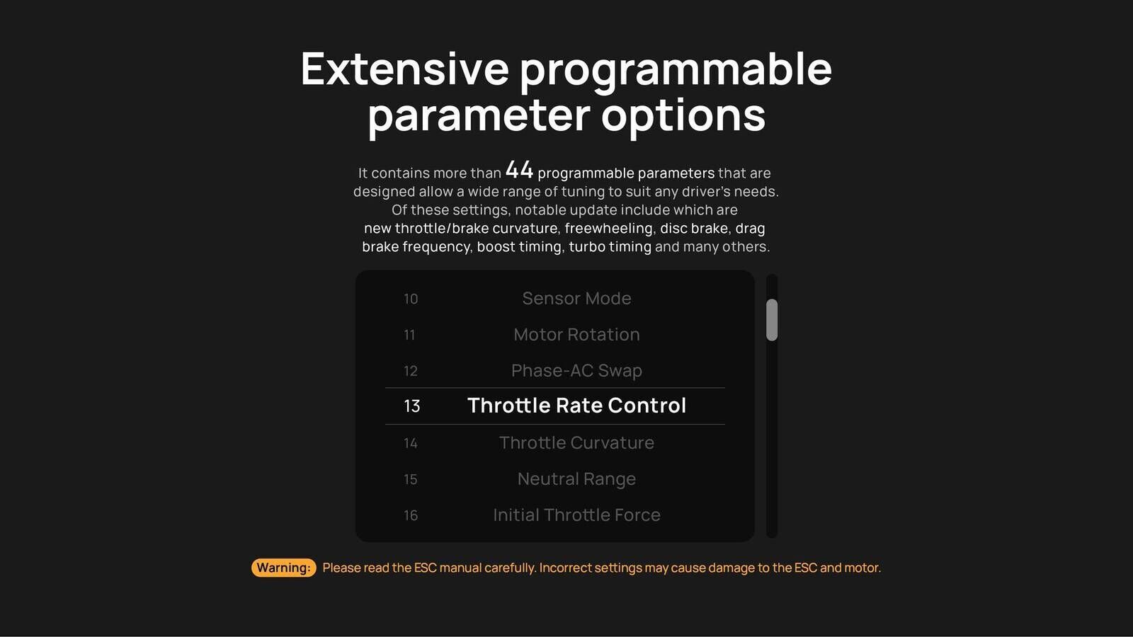 In addition to the integrated data logging, the G3 comes with many interesting new features! The freewheeling function ensures more efficient cooling by noticeably lowering the operating temperature compared to its predecessor. The new Disc Brake Mode allows extremely precise and linear brake force control, making braking consistent and controllable across all speeds. With over 44 programmable parameters and two adjustment levels, the settings can now be better tailored to any situation.