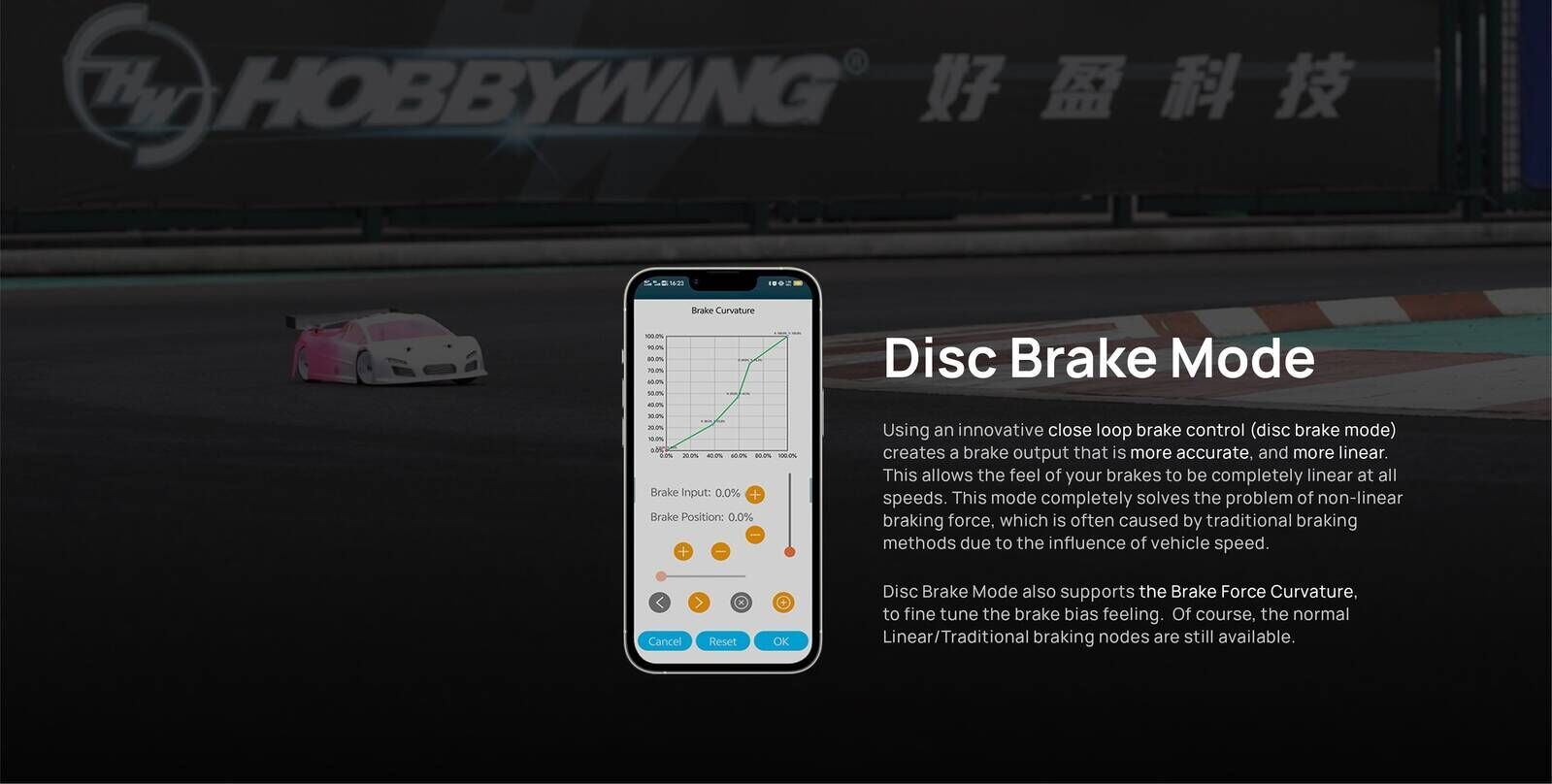 Using an innovative close loop brake control (disc brake mode) creates a brake output that is more accurate , and more linear . This allows the feel of your brakes to be completely linear at all speeds. This mode completely solves the problem of non-linear braking force, which is often caused by traditional braking methods due to the influence of vehicle speed.