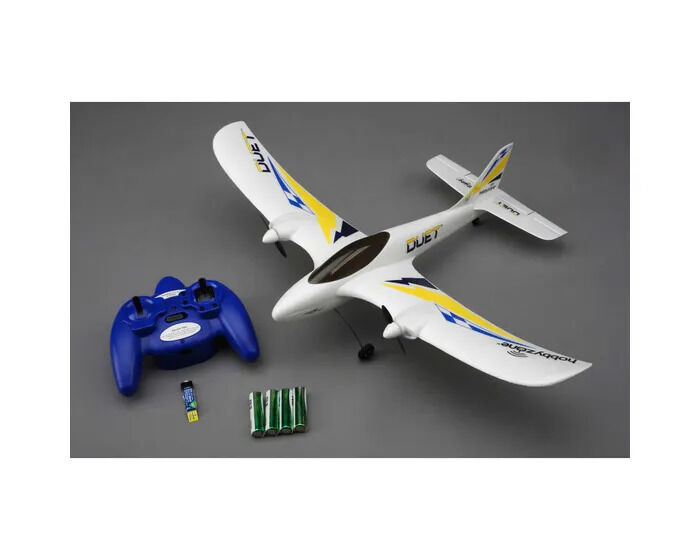 Teach yourself to fly with the Duet RTF trainer! This small RC aircraft turns your dreams of flight into a reality. Even if you've never flown an RC airplane before, you could be flying in no time with Virtual Instructor ¢ technology. This HobbyZone ®-exclusive technology makes minor corrections and adjustments to help you stay confidently in control while you learn the basics. No other RC model can offer this experience at such an incredible price.