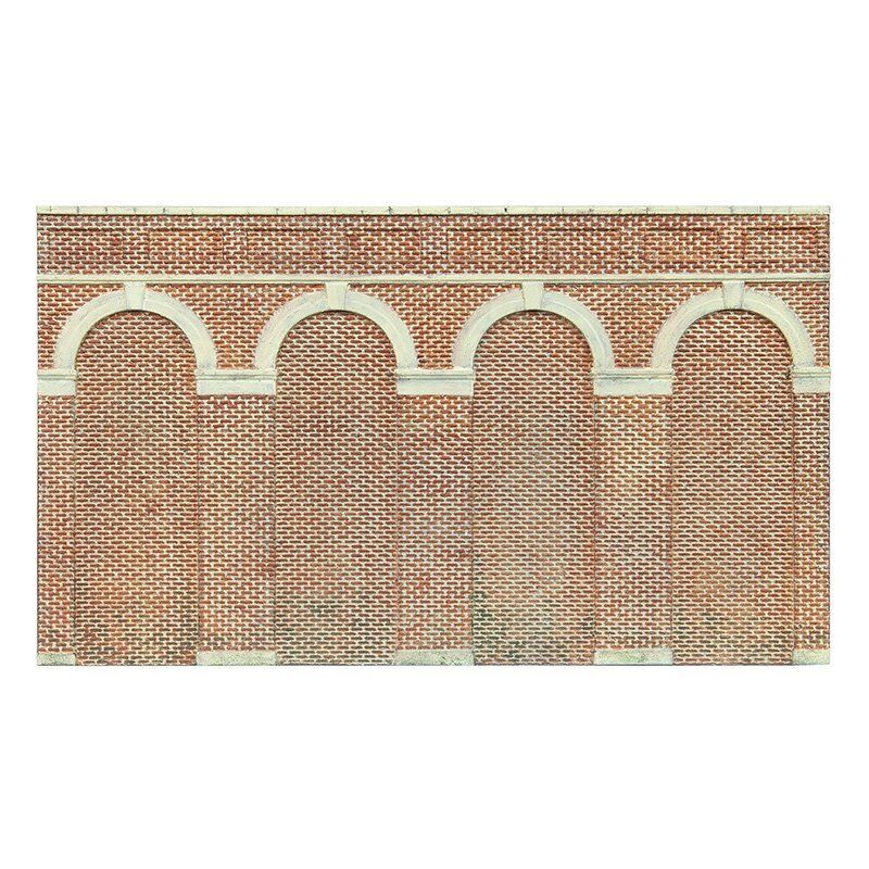 HORNBY HIGH LEVEL ARCHED RETAINING WALLS X 2 (RED BRICK)