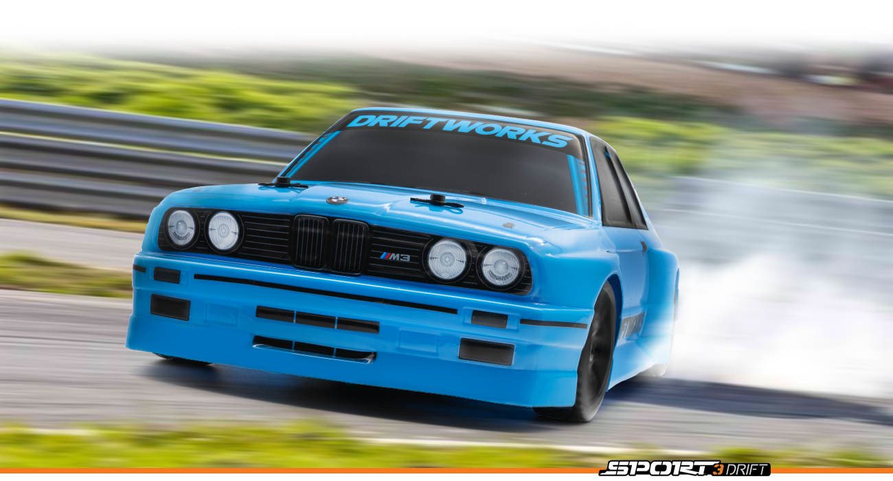 This Sport 3 Drift features the ultra-cool BMW M3 complete with extra-wide wheel arches, front air dam and a big street-style rear wing! The car is also fitted with replica Work Emotion XC8 wheels wrapped with officially licensed Toyo Proxxes tires for awesome scale realism, so it's ready to hit the drift scene right out of the box!