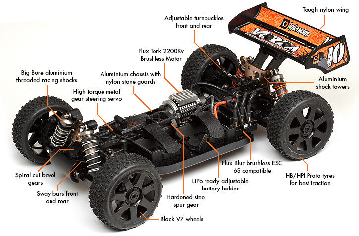 With the World Championship-winning HB D8 buggy as its foundation, the Vorza takes the race-winning design of the D8 and mixes it up with HPI FLUX HP tech from the Savage FLUX HP to give you awe-inspiring speed! This is a ready to run (RTR) buggy that you can take to BMX jumps for hair-raising big-air thrills, and then you can take it straight to any buggy track for top-level racing action - it will turn heads and amaze your friends! The Vorza has everything that backyard bashers and racers want! The Vorza FLUX HP is our FASTEST buggy, able to reach speeds over 60 mph*! Can you imagine an electric buggy going that fast? The FLUX ELH-6S speed controller takes 2 batteries, allowing you to fit in up to 6S of LiPo power for utterly insane top speeds and mind-boggling take-off power!