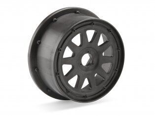 Style up the Baja 5SC and 5T with TR-10 Wheels,mimicing the style used in full-size short course racing! These10-spoke beadlock wheels not only look amazing, they also grip thetyres in place securely and hold it in place in all sorts of toughracing conditions. The tire is held on with bead lock rings to keepthe tire securely mounted on the wheel without the need for messysuper glue. Made from tough high-impact nylon with metalreinforcements around the hex hubs for extra durability, thesewheels are available in your choice of black, gunmetal and shinychrome to help you match your paint scheme and add a custom look toyour truck.