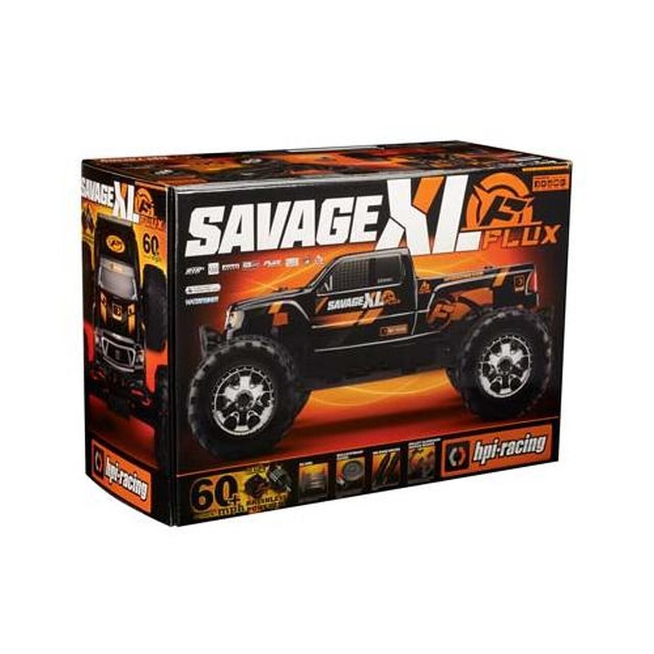It's bigger, it's faster, it's stronger, the Savage XL Flux is a basher's dream machine! When you pair HPI Racing's legendary Flux brushless power system with a virtually bulletproof drivetrain, you've got a monster truck that's unstoppable! Everywhere you look the Savage XL Flux is beefed up to handle its awesome torque as well as any terrain or conditions you can throw at it. And because this beast is Ready-To-Run, you can be out terrorizing the competition right away.
