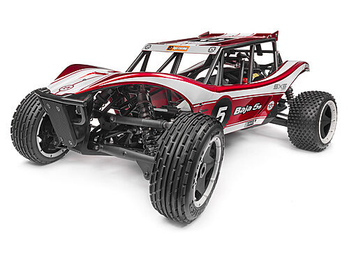 The Baja 5B Sidewinder X5 also features the new TF-45 radio system - a 3-channel, 2.4GHz radio that has all the most-desired features experienced RC drivers crave. Among its many features are Frequency-Hopping Spread Spectrum (FHSS) digital 2.4GHz radio technology, end-point adjustments and electronic failsafe protection, plus dual-rate, trim and reversing functions. It's also lightweight and comfortable thanks to its drop-down steering wheel, changeable grip size and padded steering wheel.