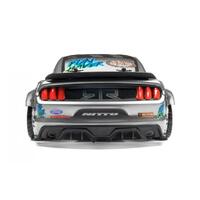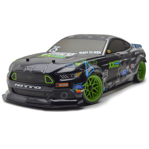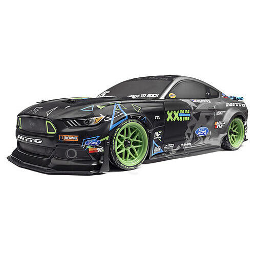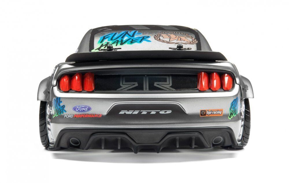 The super realistic Ford Mustang RTR Spec 5 body is coupled with a set of replica Tech 7 wheels wrapped with official Nitto RT05 replica tires for over the top scale realism! Under the hood, this 1/10th scale Mustang is equipped with the latest HPI Racing Touring Car chassis, the RS4 Sport 3. With full time shaft driven 4WD, a fully sealed drivetrain, waterproof 2.4 GHz electronics/radio gear, fully independent double wishbone suspension and adjustable oil filled shocks it s Ready to Rock in any condition.