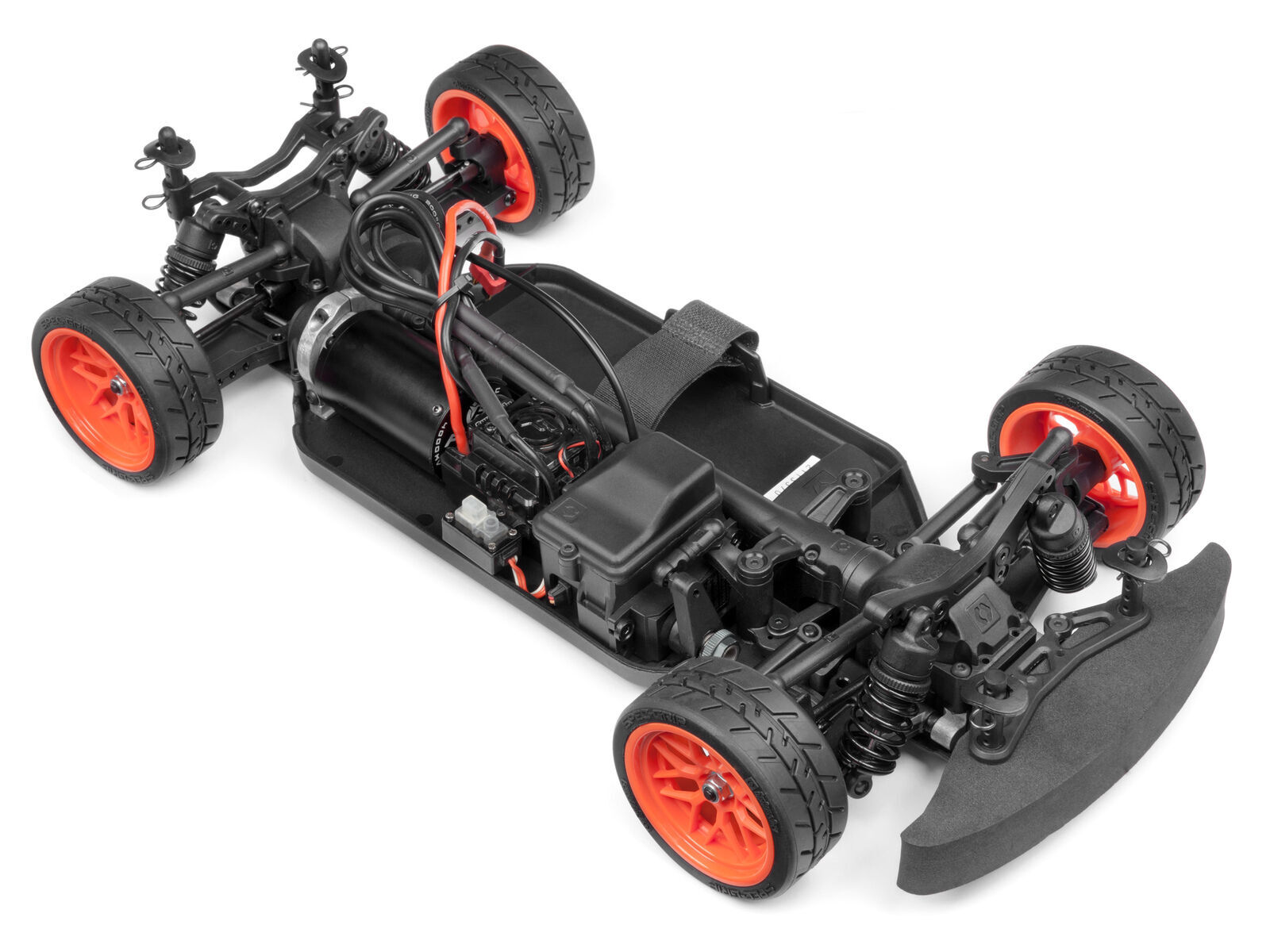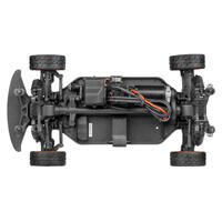 Underneath the detailed replica body is the Sport 3 chassis, the latest scale touring car chassis from HPI Racing! The HPI Sport 3 chassis features full-time 4WD, a completely sealed and highly efficient shaft drivetrain, coil-over shock absorbers plus waterproof electronics. The fully contained drivetrain means there are no exposed gears, belts or drivetrain parts to get stuck with rocks or dirt. The car is completely assembled and ready to run, so all you have to do is PLUG IN AND DRIVE!