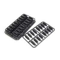 Each barrier measures 25mm long by 14mm high and features a mounting hole suitable for a screw or nail, helping secure the barriers in place if you are creating a more permanent track layout.