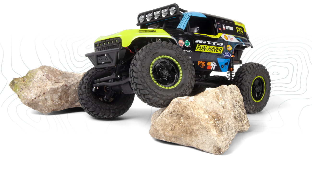 Styled after Vaughn Gittin Jr. s unmistakable Ford Bronco 4400, the officially licensed Venture18 RTR captures the attitude and aggression of its full-scale counterpart. With its eye-catching livery inspired by Vaughn Gittin Jr. s race-winning rigs and packed with authentic scale details from working light grill to tube cage and interior this RC model isn t just about looks. It s built to take on the trail just like the real 1000-horsepower monster tearing through King of the Hammers.