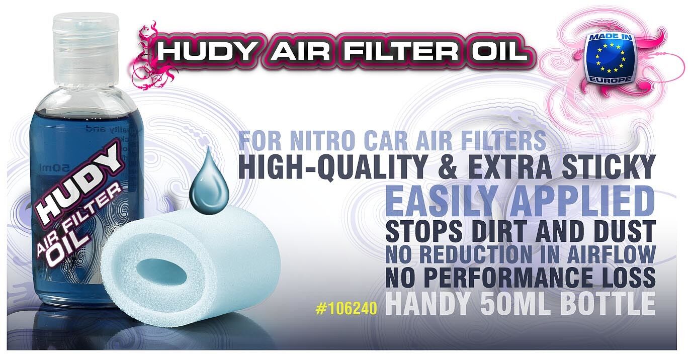 Specially-developed high-quality air filter oil is extra sticky and easily applied to the air filters of any nitro car. This air filter oil is sticky enough to stop dirt and dust, while still allowing airflow to ensure no loss of performance. Filled in perfect handy 50ml bottle, made in Europe. Blue color.
