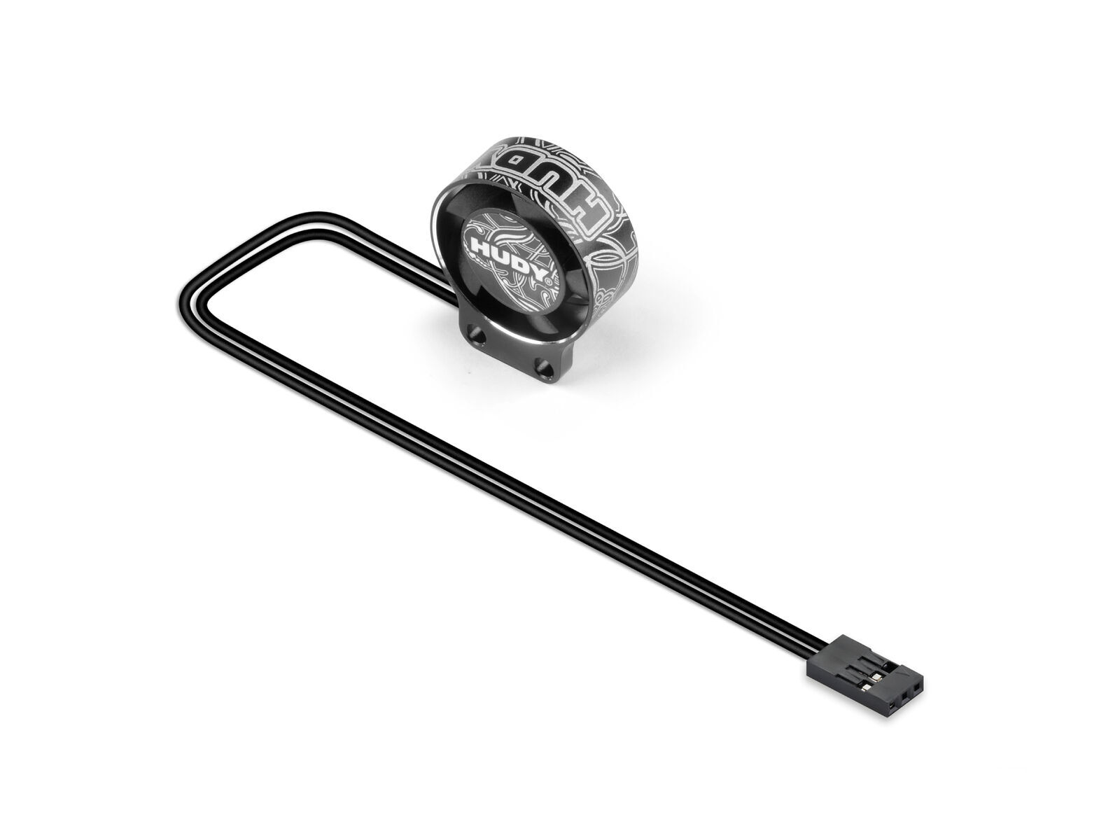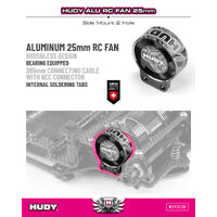 Compact and reliable 25mm cooling fan designed primarily for 1/12 scale rc cars, where space-efficient cooling solutions are required. The compact size and side-mount 2-hole configuration allow easy installation in tight chassis layouts while providing consistent airflow for electronics cooling. The cnc-machined aluminum housing ensures durability and precise fit, while the brushless, bearing-equipped design delivers smooth and long-lasting performance. Laser-engraved hudy graphics complete the professional finish.