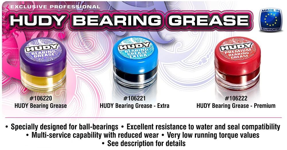 HUDY Bearing Grease is an extended-life multipurpose lubricant for ball bearings and is a direct replacement for the grease delivered in ball-bearings. HUDY Bearing Grease combines an optimized additive package with proven synthetic-base oils and a robust lithium complex thickener system to provide outstanding protection against wear, rust, high temperature degradation and demanding startup and heavy loading conditions. Features: