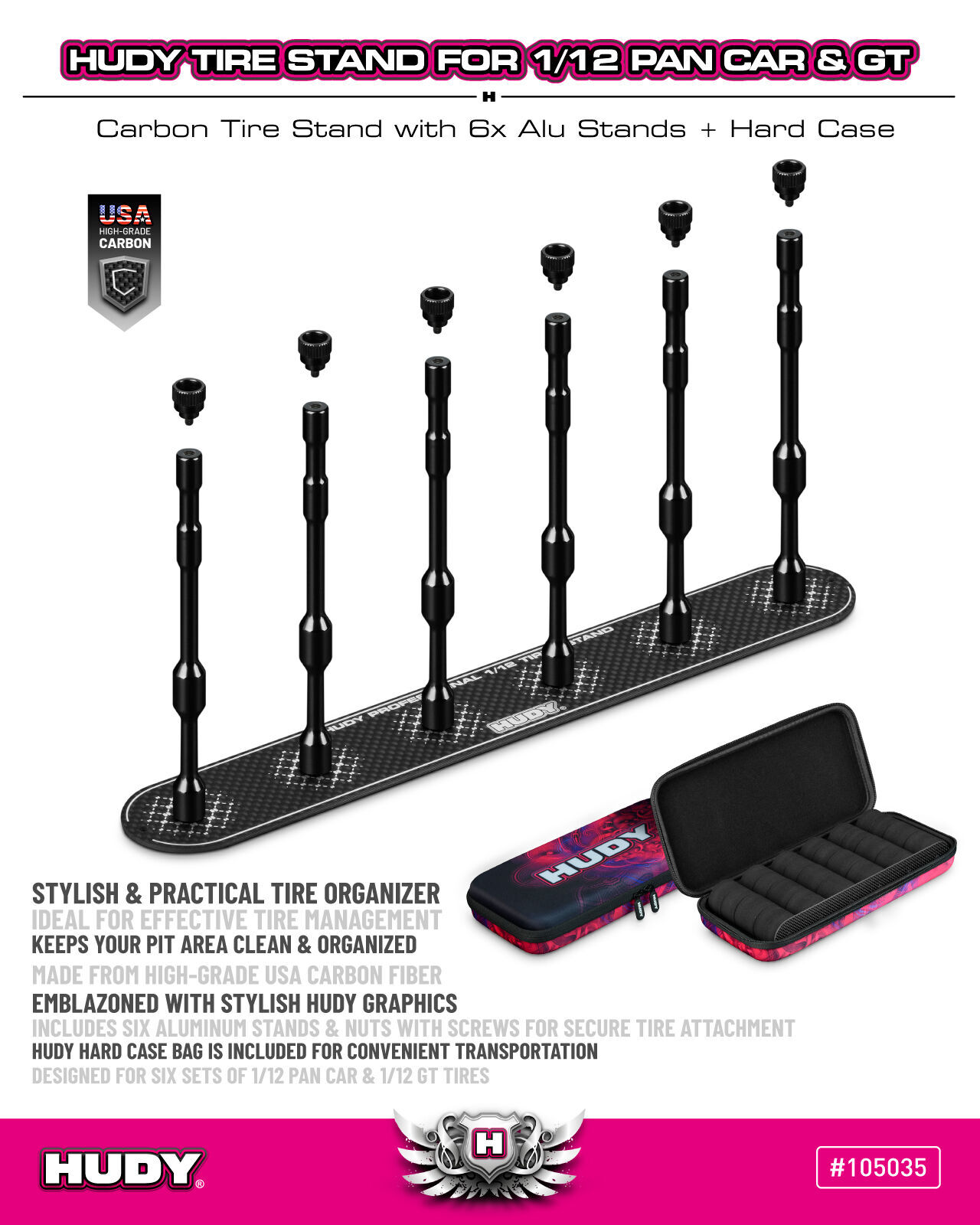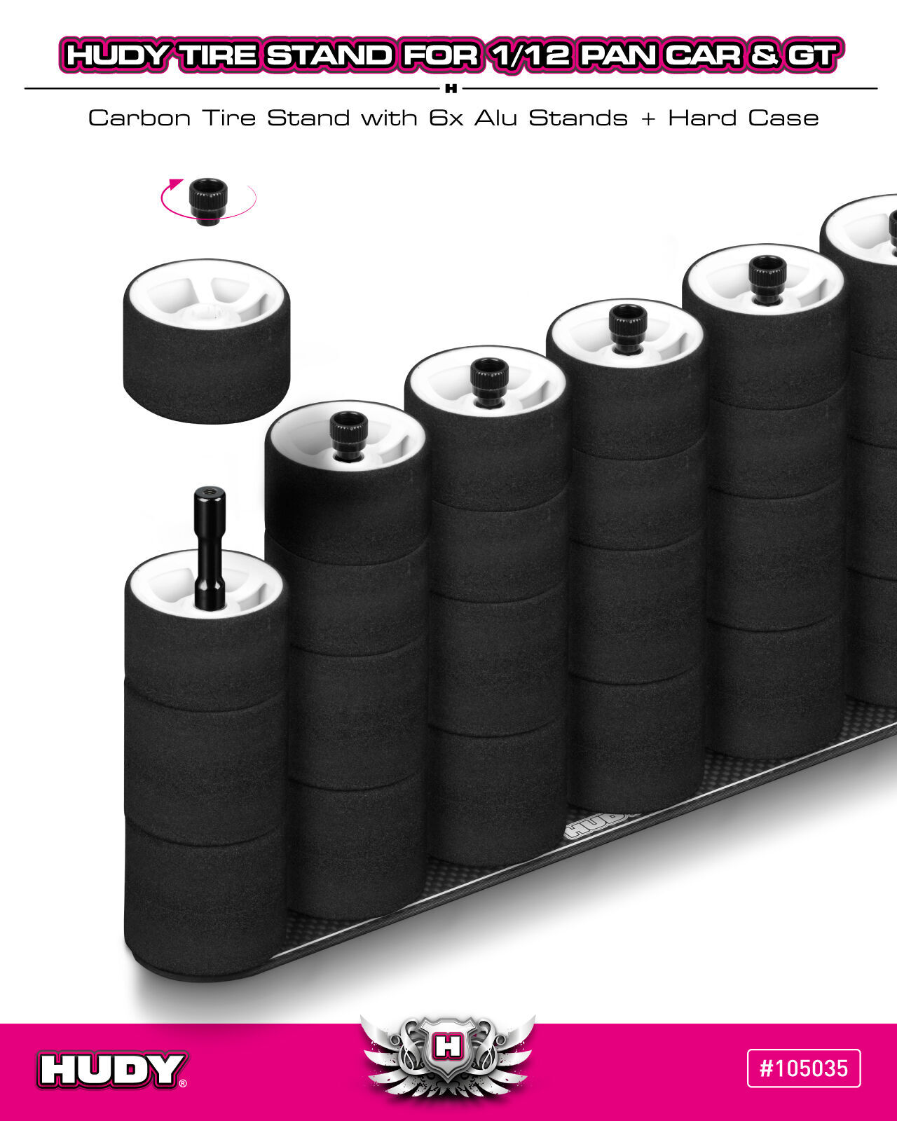 HUDY CARBON TIRE STAND 6x + HARD CASE - 1/12 PAN CAR & 1/12 GT