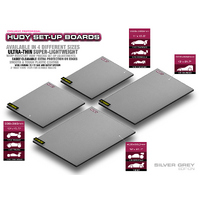 All-new HUDY Lightweight Set-up Board edition is available in 4 different sizes to fit all the different RC scales. A must have pit board accessories for every RC car racer. The new thinner set-up board is significantly lighter and more compact and such is very handy to pack for travel.