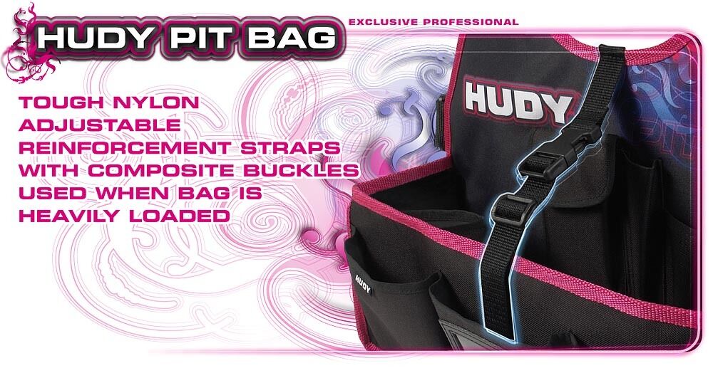 The legendary, purpose-designed RC car pit bag from HUDY has been completely redesigned AND; improved. The new lighter and more compact design allows much easier handling, transport, and use for all on- and off-road racing in 1/8 and 1/10 classes.