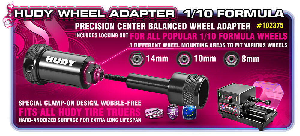 Write A ReviewHUDY TIRE TRUER WHEEL ADAPTER 1/10 FORMULA 1 WHEELS - HD102376
