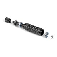 - Wheel adapter for 1/10 Electric and Nitro Touring wheels for 105500 HUDY Universal Tire Balancing Station. The wheel adapter come with a CNC-machined aluminum holder and one-piece super-strong and precise steel rod that rotates in the ball-bearings. The hex on the wheel adapter fits precisely into the wheel and a machined tightening nut is included for fast and comfortable wheel tightening. All alloy parts are CNC-machined from highest-quality aluminum with stylish black coating and laser engraving.