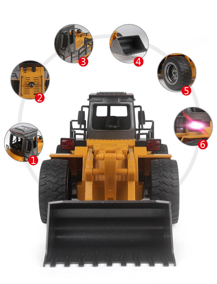 Write A ReviewThe HuiNa 6-Channel 2.4G bulldozer is a scale RC model of a real bulldozer that works just like the real thing. The frame is made of hard metal reinforced alloy for durability, while the powerful 4WD double motors allows for traversing even the toughest terrain. The wheels are made of hard metal for durability with slip-resistent rubber tyres.