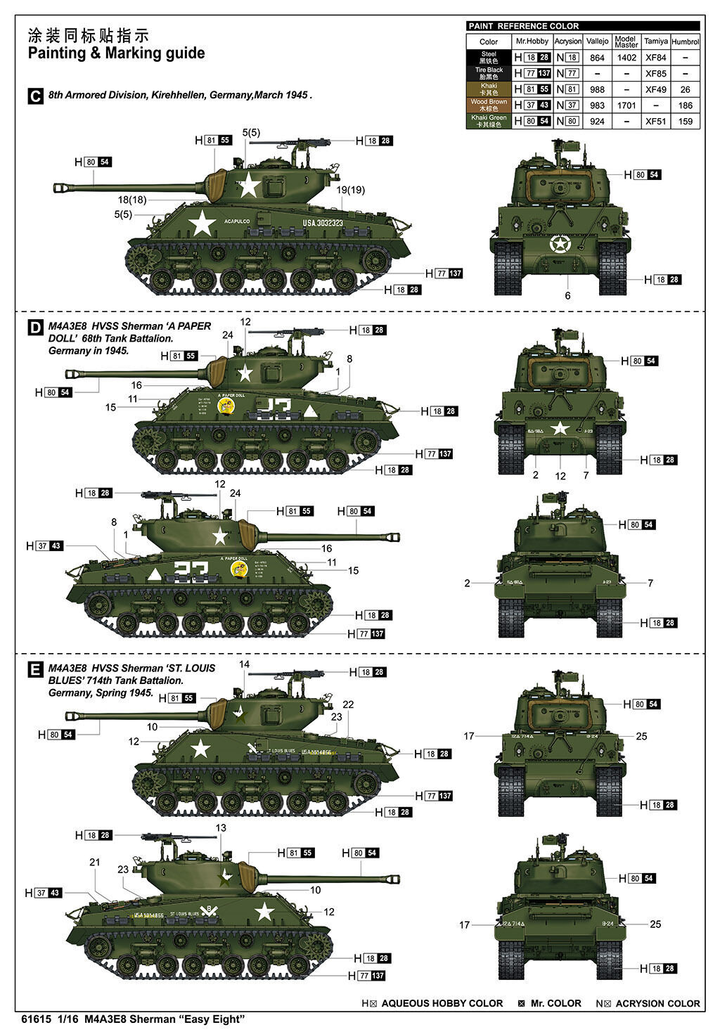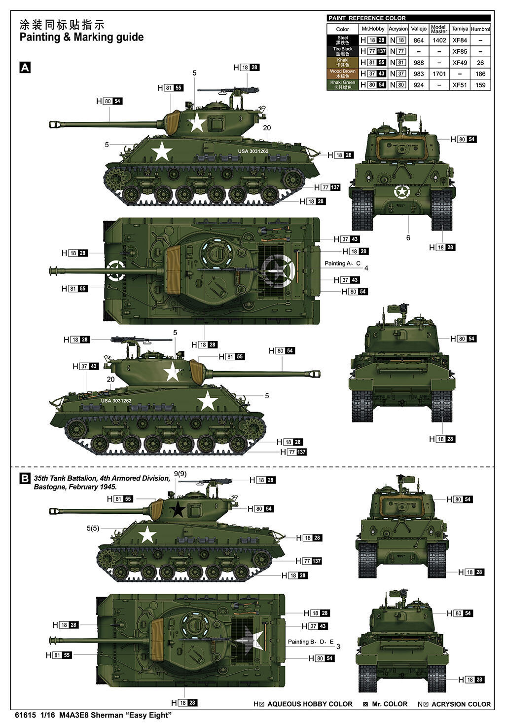 M4A3E8 is the last type of Sherman. It can be said to be the outstanding work of its time. It has a good balance of various capabilities. Its improved balance of firepower, armor and maneuverability is completely comparable to the Russian T-34/ 85 compared to the German Panther.