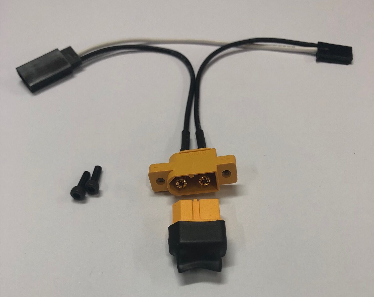 - MOUNT THE XT60E-M (MALE) TO YOUR RECEIVER BOX FROM THE UNDERSIDE, SCREW IN FROM THE TOP WITH SCREWS PROVIDED.