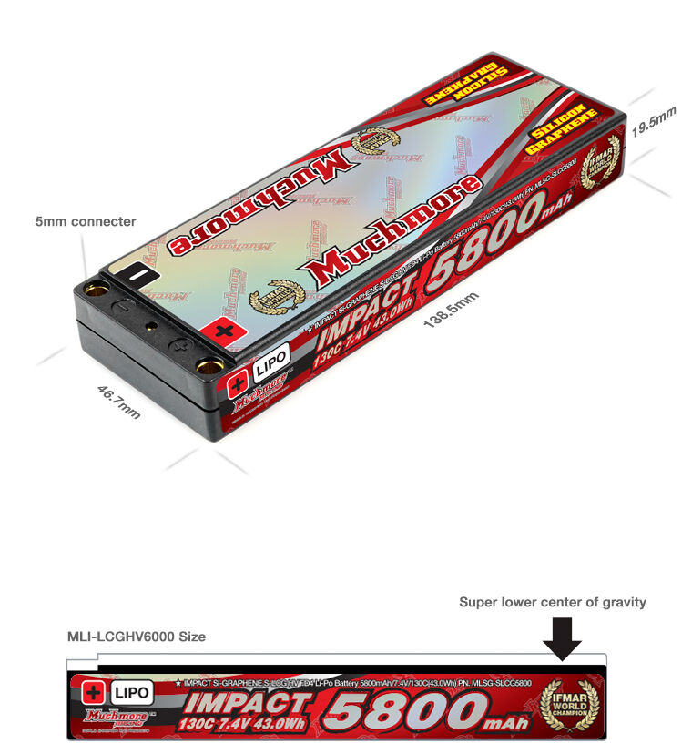 IMPACT SILICONE GRAPHINE S-LCG HV LI-PO BATTERY 5800MAH/7.4V 130C STANDARD LENGTH - MR-MLSG-SLCG5800