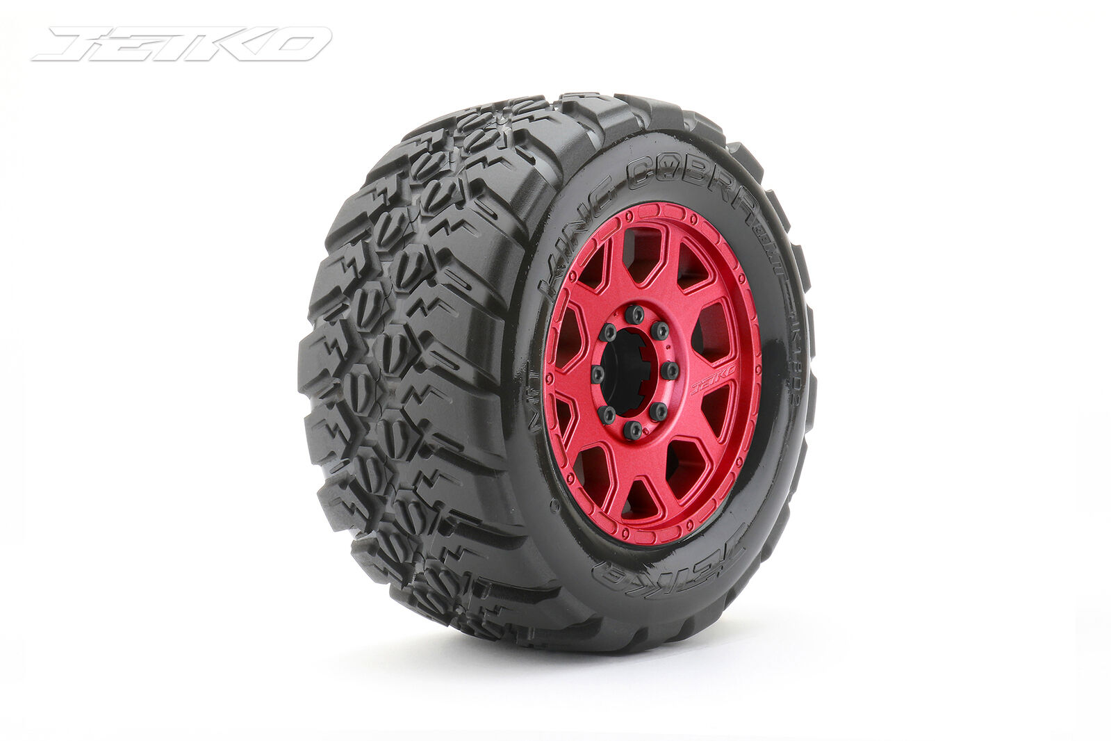 Write A ReviewJetko 1/8 MT 3.8 EX-KING COBRA Tyres (Claw Rim/Metal Red/Med Soft/Belted) (2pcs) [1802CRMSGBB1]