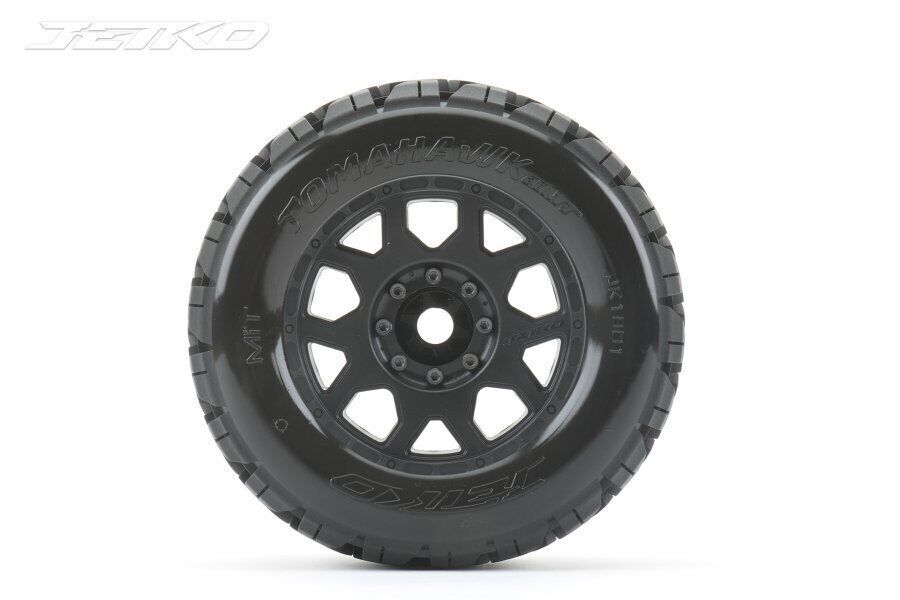 The tomahawk tyre has been designed to deliver enhanced steering control and superior traction. Reinforced outer tread blocks with grooves provide improved steering, while the large central tyre tread with tomahawk shape ensures longer tyre life and increased traction at high speeds. The reinforced tyre shoulder blocks increase lateral grip and cornering stability, and the multi-directional grooves provide better grip and cornering stability. The usa rubber compounds used in the tyre's construction deliver improved tyre life and wet traction, making it the ideal choice for any rc enthusiast