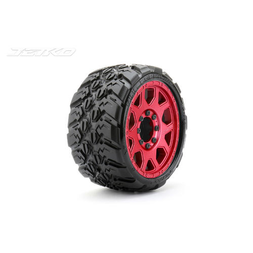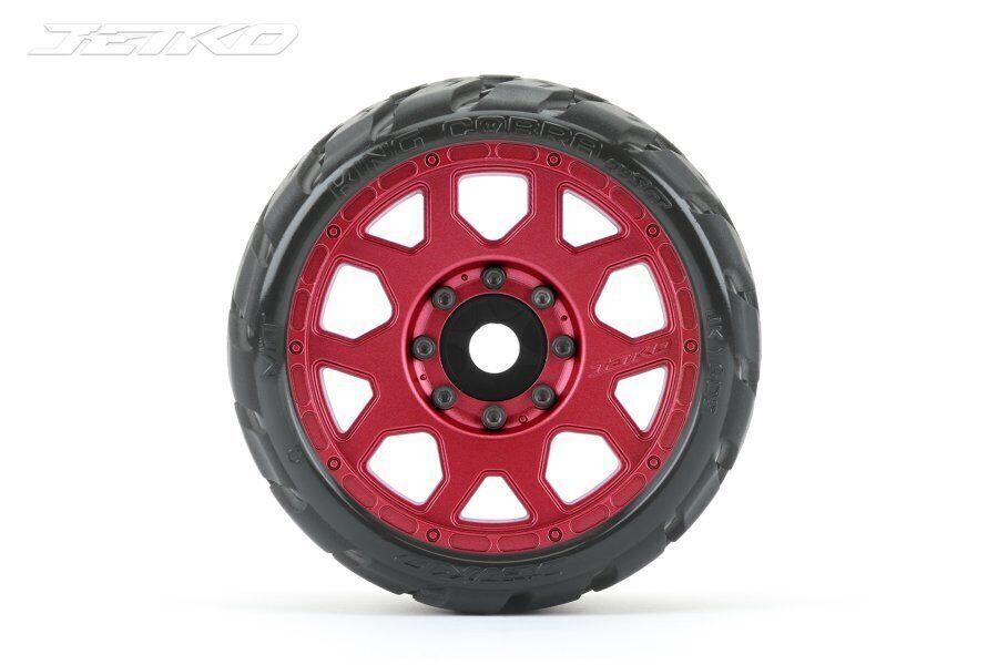 Write A ReviewJetko 1/8 SGT 3.8 EX-KING COBRA Tyres (Claw Rim/Metal Red/Med Soft/Belted/17mm 0 o/s) [1602CRMSGBB1]