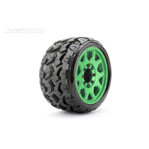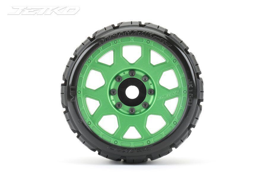 Write A ReviewJetko 1/8 SGT 3.8 EX-TOMAHAWK Tyres (Claw Rim/Metal Green/Med Soft/Belted/17mm 0 o/s) [1601CGMSGBB1]