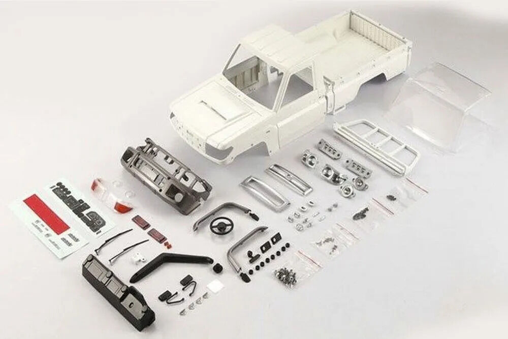 They say the devil is in the detail. Well it certainly is with the new hard body Toyota Land Cruiser LC70 from Killerbody! Where do we start... this body is heaven for all scale crawler/trail fans. With separate bonnet, doors, bumpers, mirrors, snorkels, wind shield and grills the LC70 can be completely customised to replicate the real vehicle in everyway. Optional cockpit set and interior, along with latches, bonnet hinges and more create a model that is truly stunning. Three different body mount sets are currently available to suit the Axial SCX10 and SCX10 II, a low mount for the SCX10 and an RC4WD TF2 mount. Wheelbase is 313mm, width 197mm. Hard Plastic: Truck Cab Truck Bed Truck Bed Sides Front Bumper Air Intake Steering Wheel Wing mirror; Interior mirror w/metal installation parts; Silver mirror decal for both mirrors Wiper; Door grill (Right & Left) Front Wheel arches (Right & Left) Chromed light bucket: Front / Rear Light Bucket; Turn Light Bucket; Foglight Bucket Chromed Radiator Grill (top & bottom) Chromed Oil Can/Door Knob/Antenna/Badge Polycarbonate (lexan): PC Transparent Window Windshield PC Dashboard PC Painted Light Lenses (hard polycarbonate) Additional parts: Dashboard Decal Sheet Body Decal Sheet Parts Bag Spec Check: Long Wheelbase: 313mm Width: 197mm (KB48601)