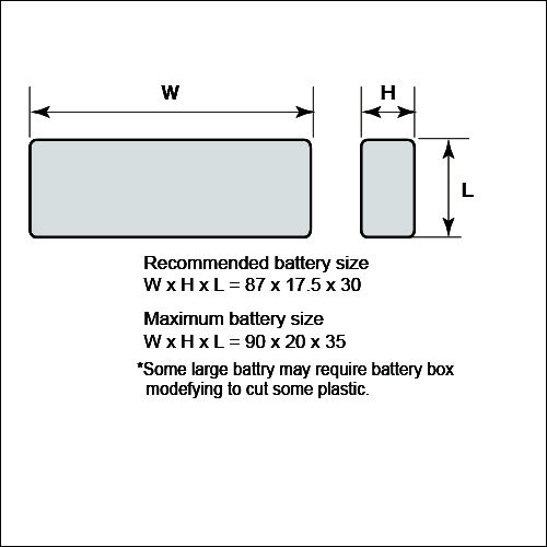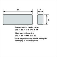 Most 2 Cell 2400mah Liong Style Lipo Batteries will fit perfectly - We use and recommend INTL2400-2S-W1